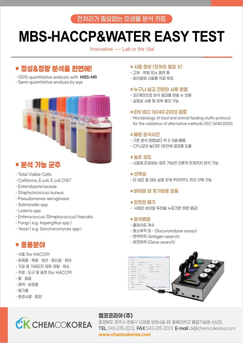 오늘은 전처리 필요없는 미생물 분석 키트 MBS-HACCP&WATER EASY TEST를 소개드립니다.
