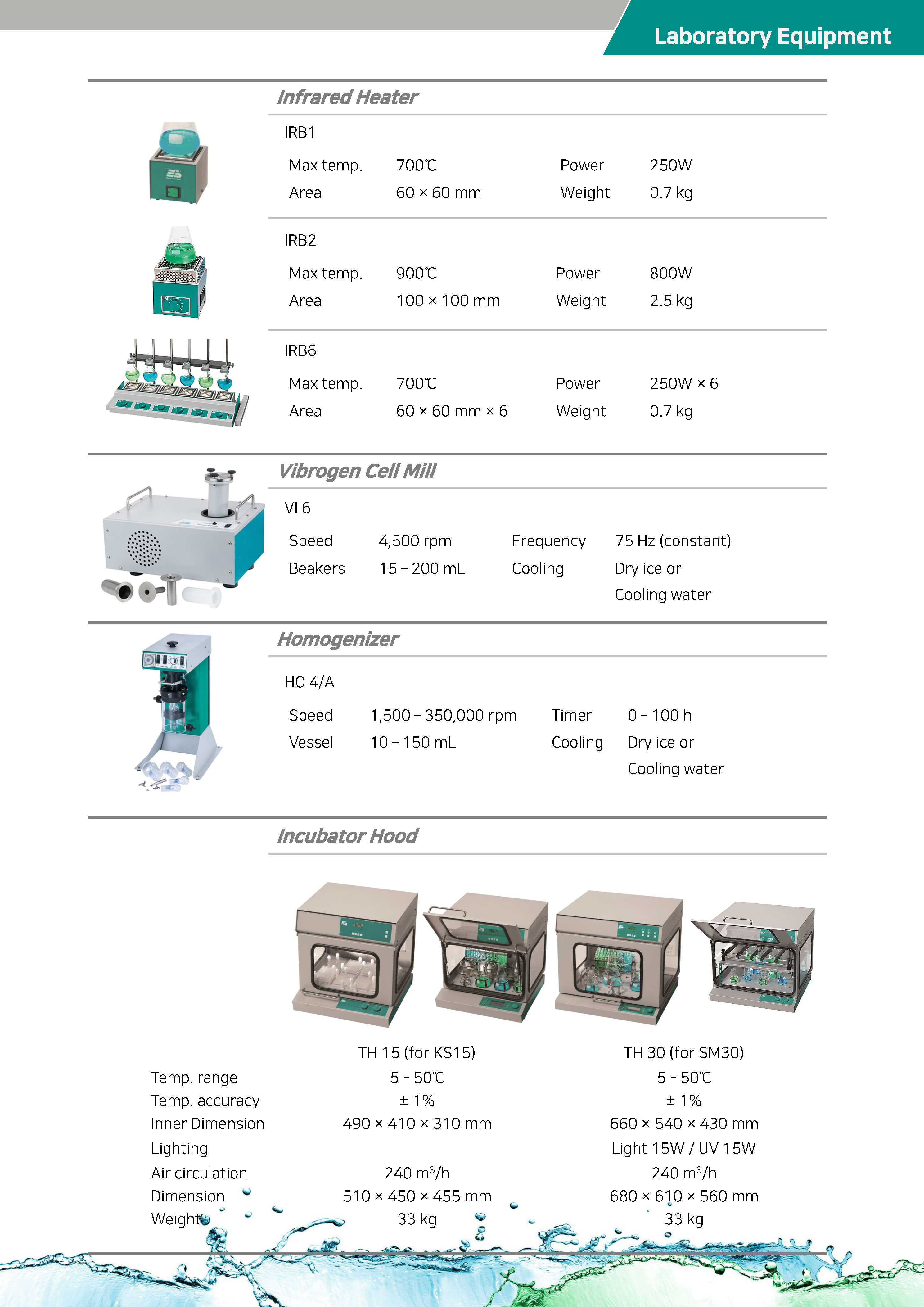 Orbital Shaker, Dual Action Shaker, 3D Shakerm, Incubator Hood, Infrared Heater, Homogenizer 등