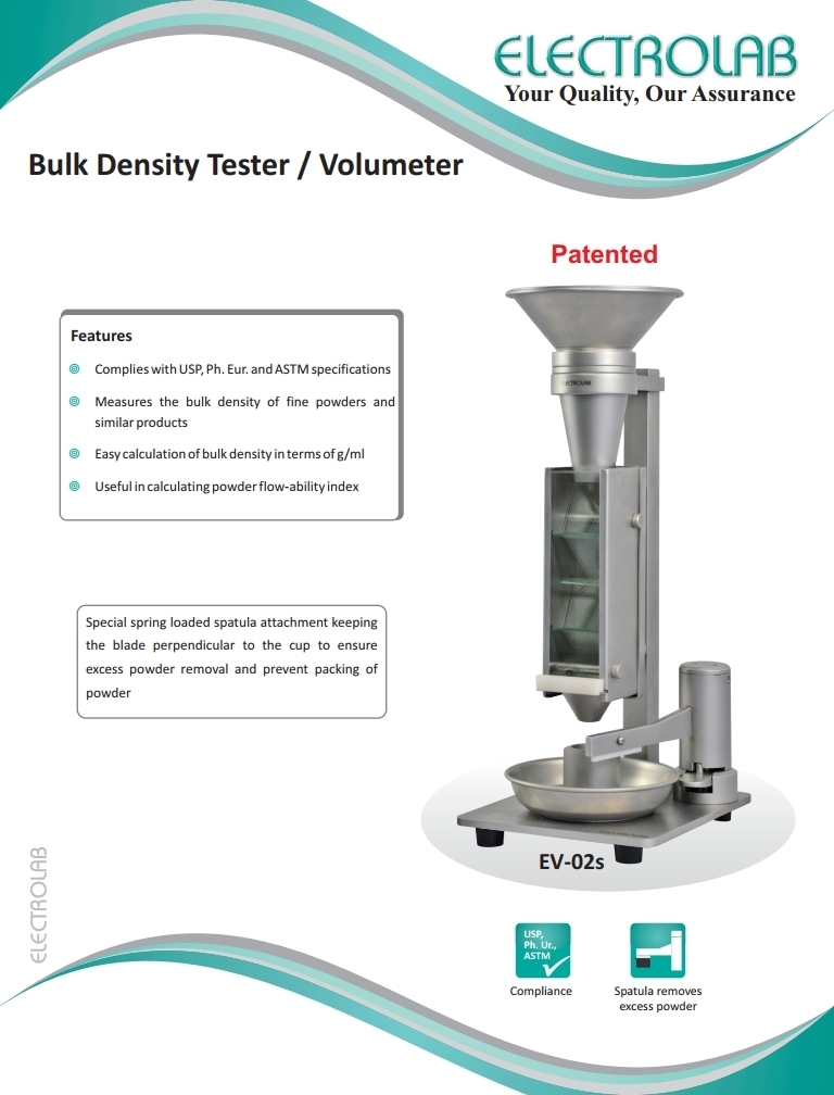 - Measures the bulk density of fine powders and similar products