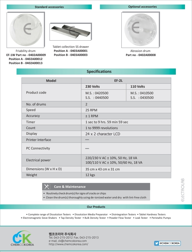 | Dual Drum Friability Tester with Weighing Scale Interface (EF-2W) 마손도시험기 (0) | 2022.07.22 |