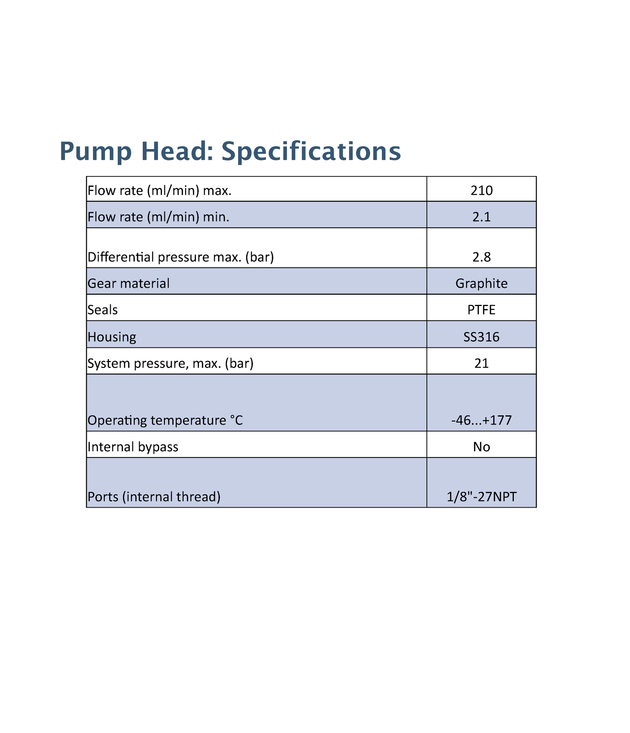 - Graphite and 316 stainless steel pump assembly ensures solvent resistance