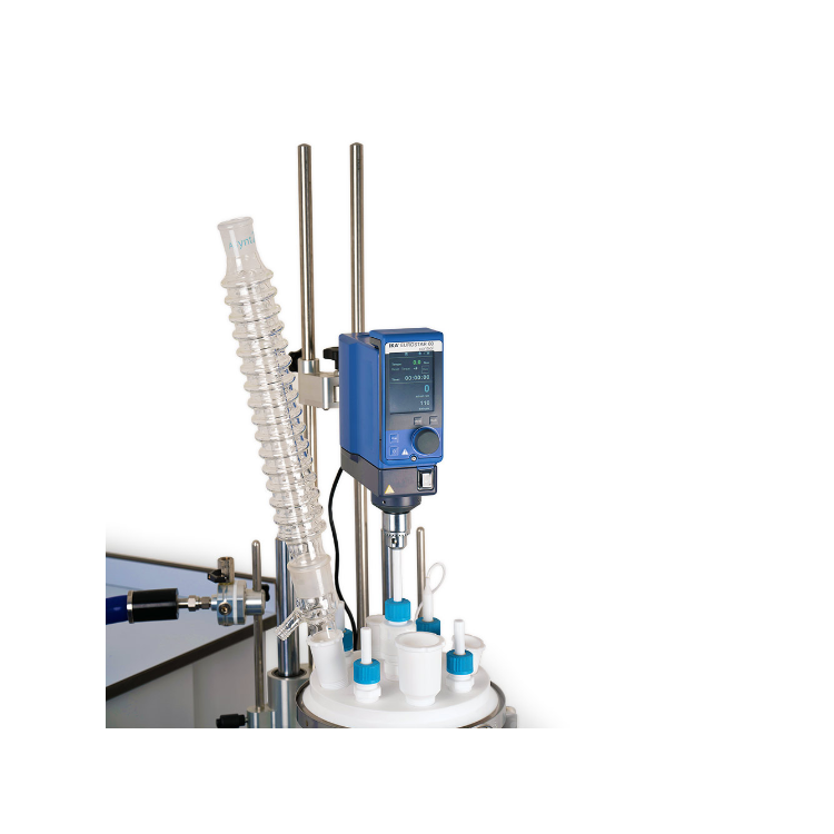 The Asynt CondenSyn MAXI reflux condenser is the latest addition to the CondenSyn range, specifically designed for use with larger volumes of solvent. Handmade individually in the UK, using a unique design and manufacturing method, the CondenSyn MAXI has a high surface area which is robust and effective at condensing volumes above 1 L.