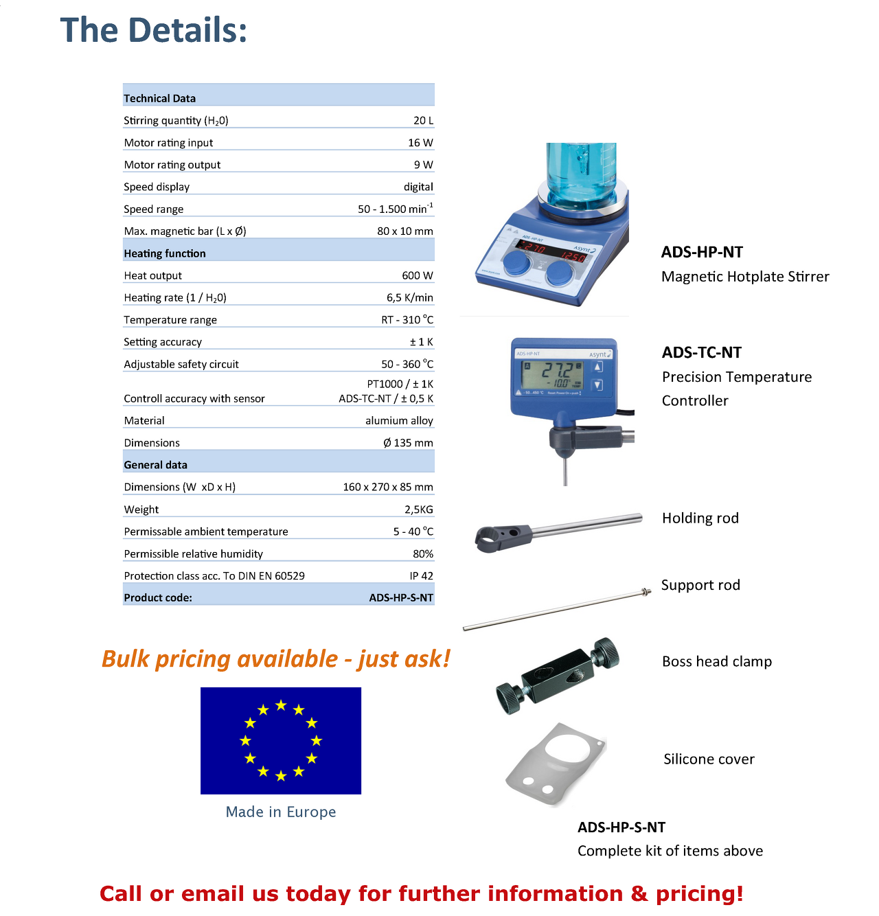 - 핫플레이트, 전자 접촉식 온도계, 고정 막대, 지지 막대, 헤드 Clamp, Silicon 커버 제공