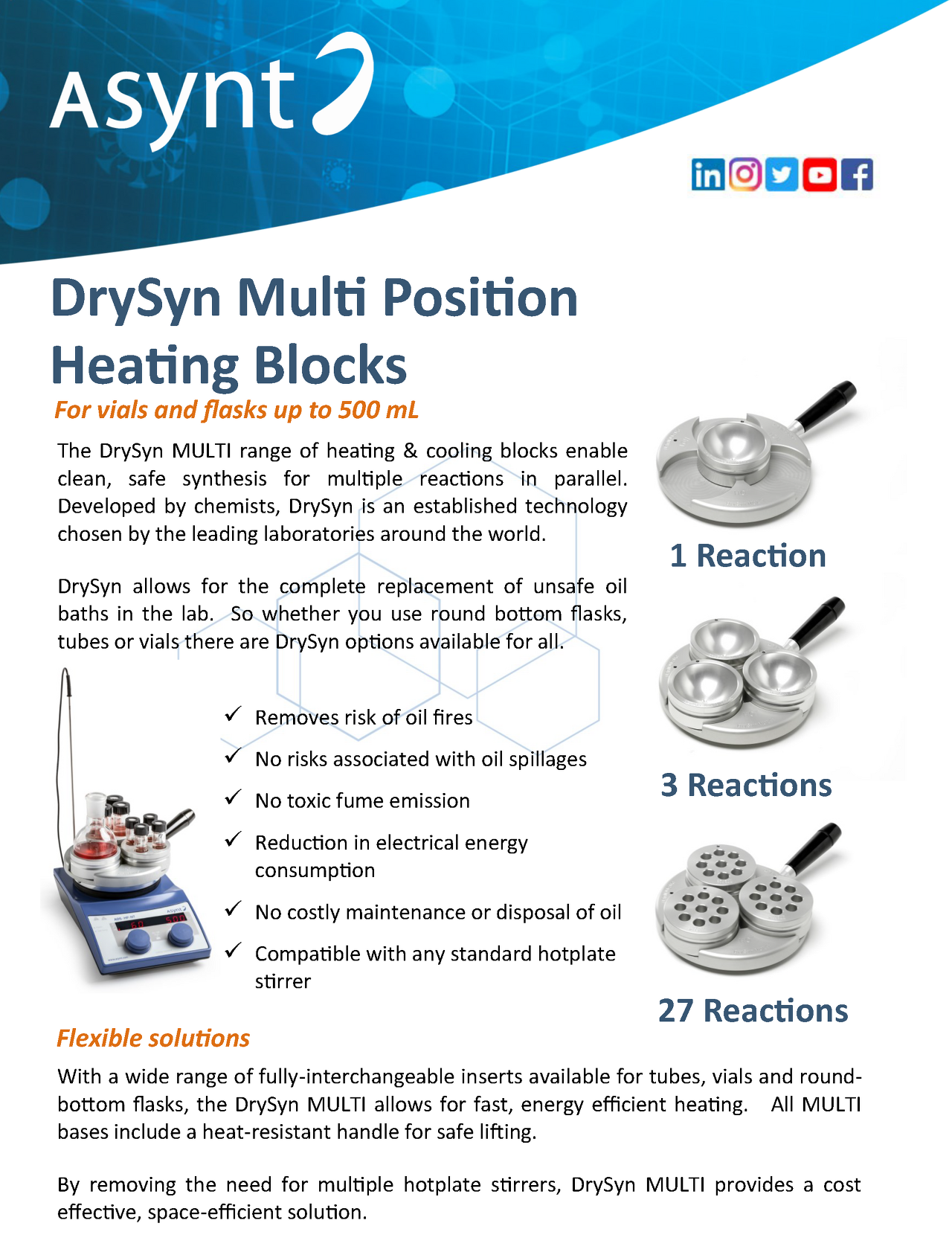 - Setting up 3 reactions is easy with the DrySyn MULTI-M clamp