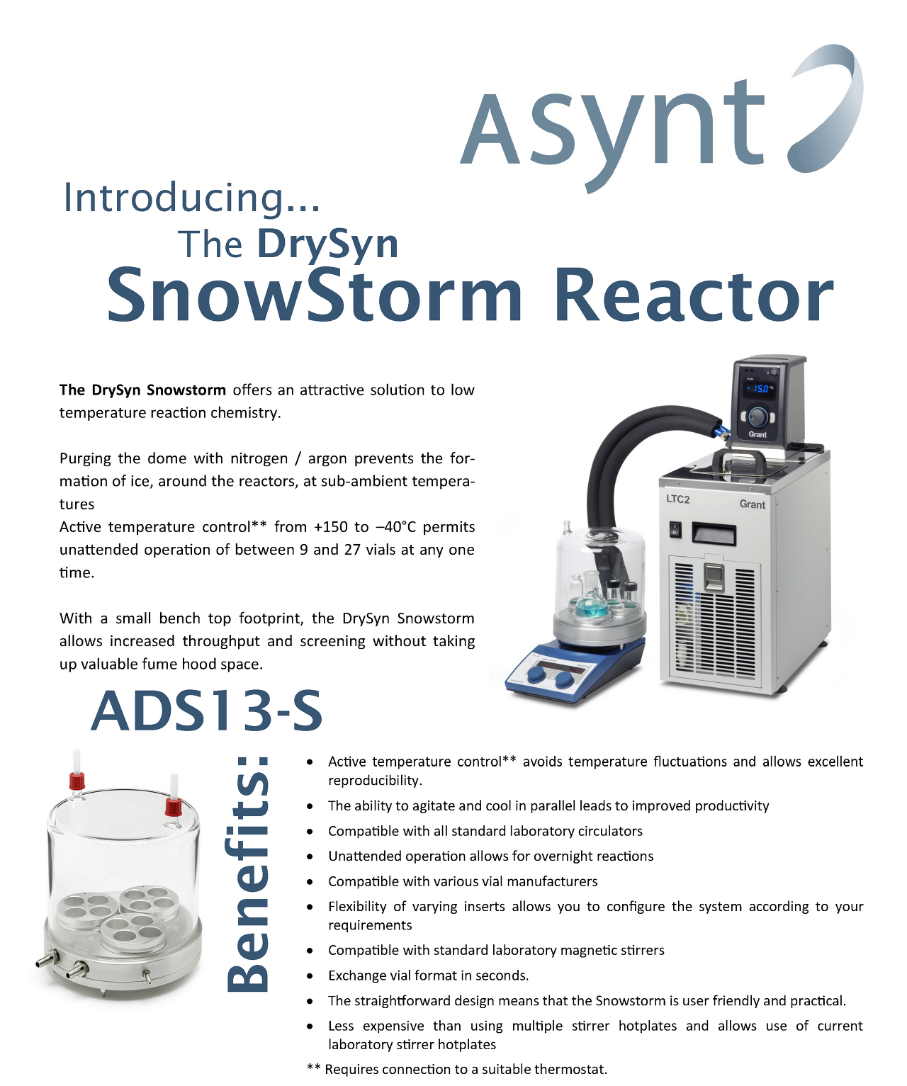 The DrySyn Snowstorm reactor offers an attractive solution to low temperature reaction chemistry.
