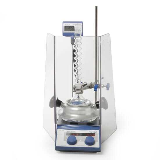Designed with a small footprint to maximise fume hood space, the shield maintains access to hotplate controls and gives good all-round visibility of the reaction or process.