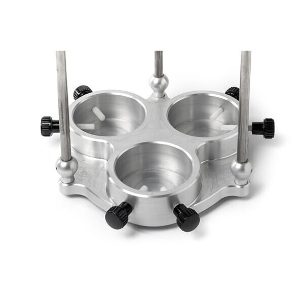 Solution: The Vortex Blend offers the scientist a compact space saving way of performing 3 blending experiments in parallel. By saving space using its 3 way gearbox and heating plate it also ensures that the experiments have identical conditions to each other in terms of stirring rate and heating rate/temperature. The Vortex Blend utilizes a standard over head stirrer motor and hotplate for operation.