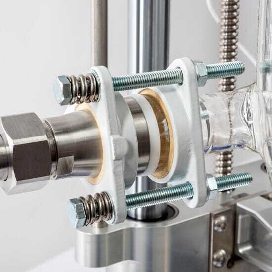 The stainless steel and aluminium framework comes complete with a neck clamp to secure your vessel in place, as well as a bottom support ring to stabilise larger vessels. The unique overhead stirrer support mechanism allows for simple alignment and the secure lifting mechanism allows for the use of all reaction vessels up to 30,000 mL.