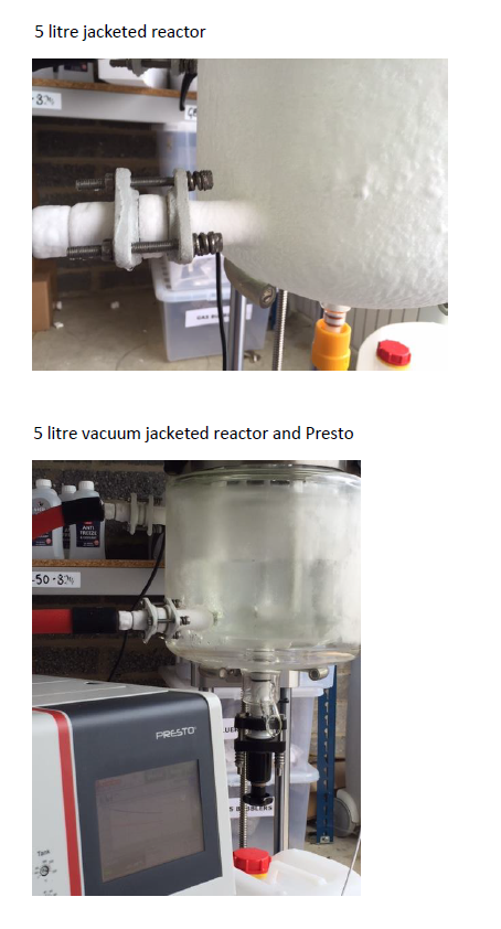 We tested 2 identical 5 litre Asynt ReactoMate vessels: one standard jacketed reactor and one with the optional vacuum jacket. These were used with the Julabo Presto circulator system. Read the evaluation report in full on the “download” tab on this page.