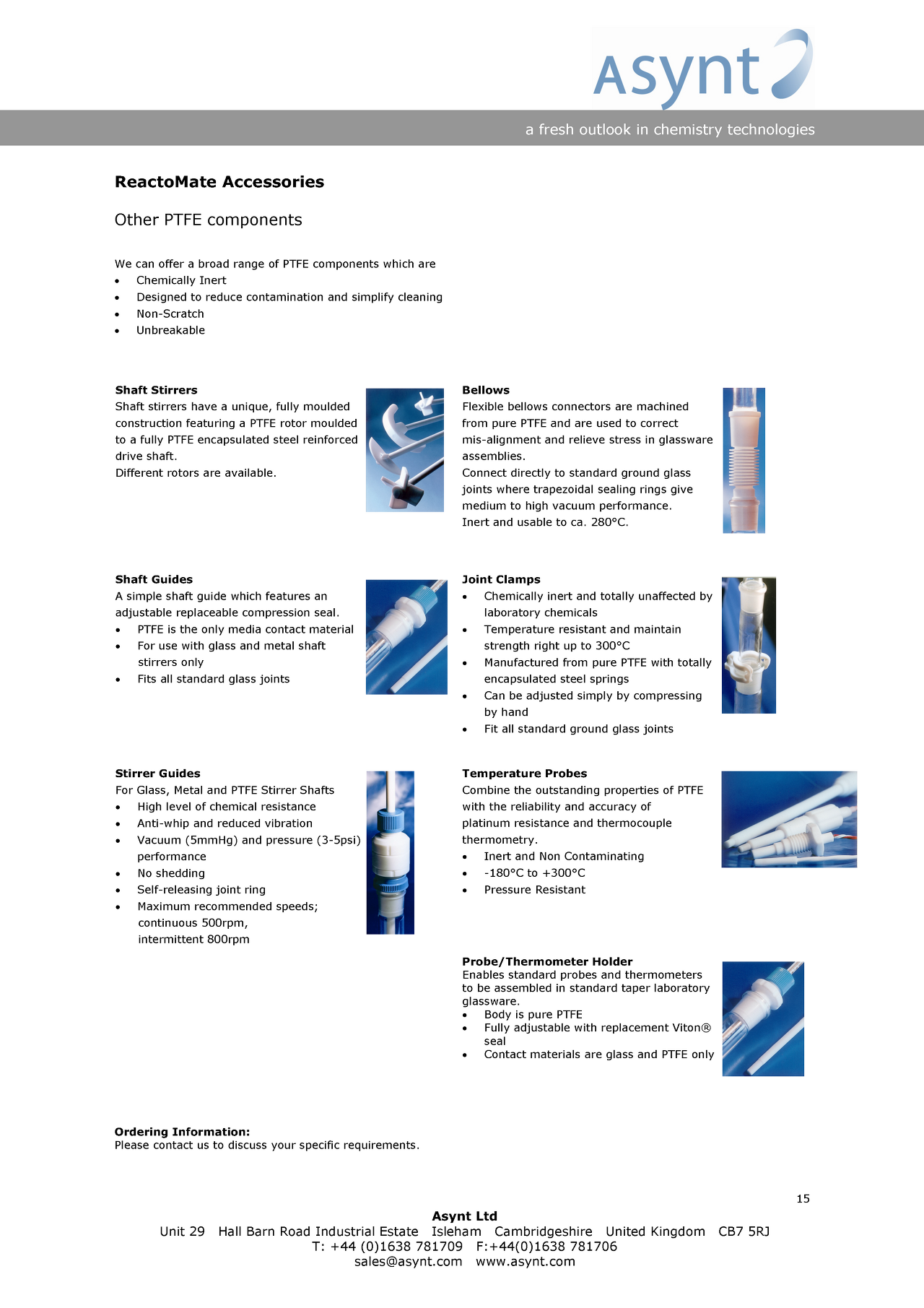 - Manufactured from static dissipative PTFE, for use in ATEX rated environments