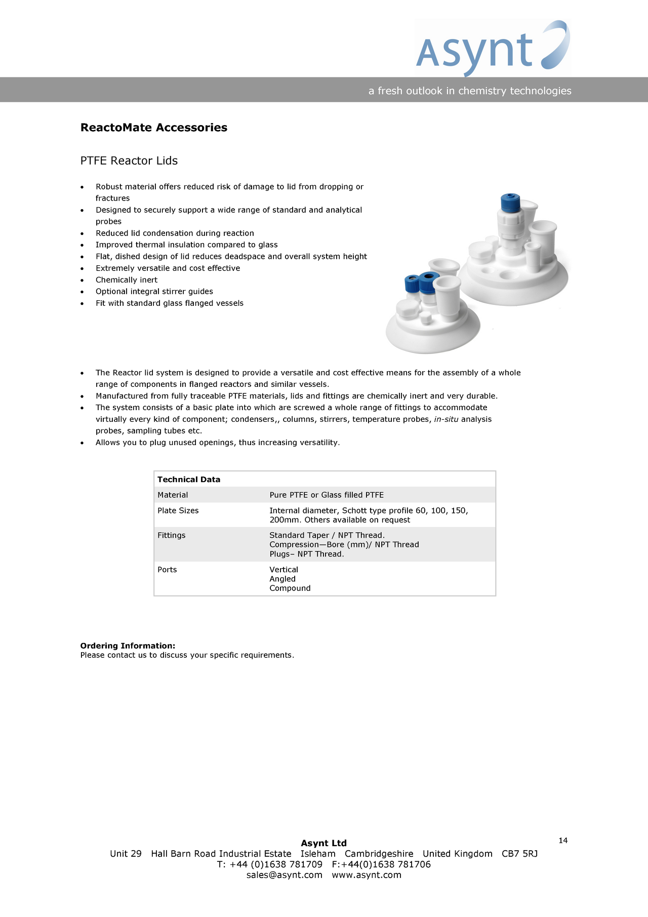 The Reactor Lid System is designed to provide a versatile and cost effective means for the assembly of a whole range of components in flanged reactors and similar vessels.