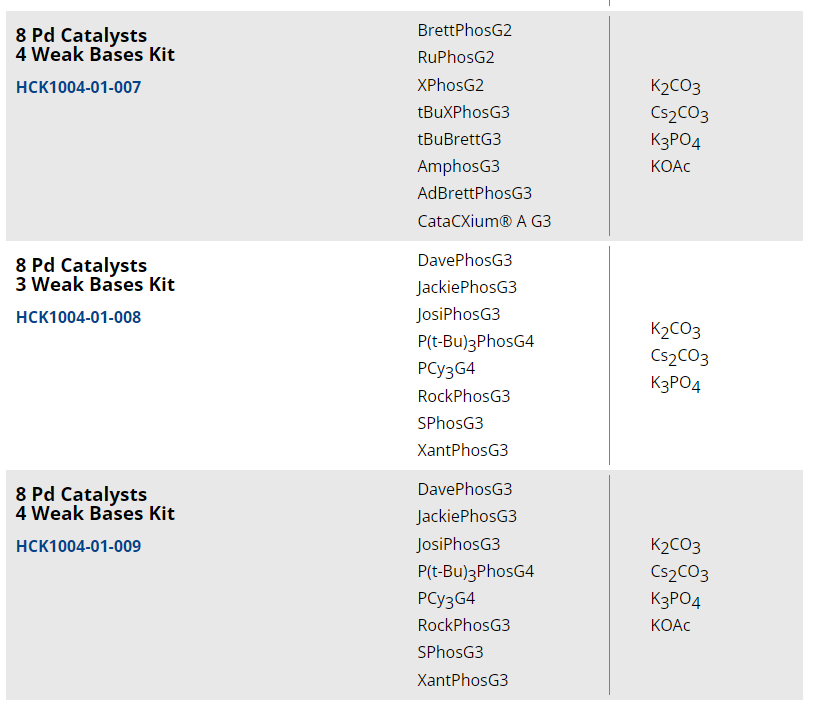 | Suzuki-Miyaura Cross-Coupling Screnning Kits (0) | 2022.09.13 |