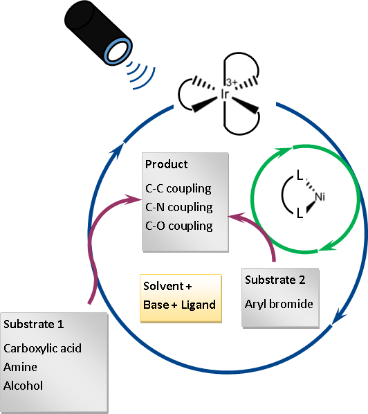 Depending on the ligand, base and solvent, the Ir/Ni catalytic systems can perform different cross-coupling reaction.