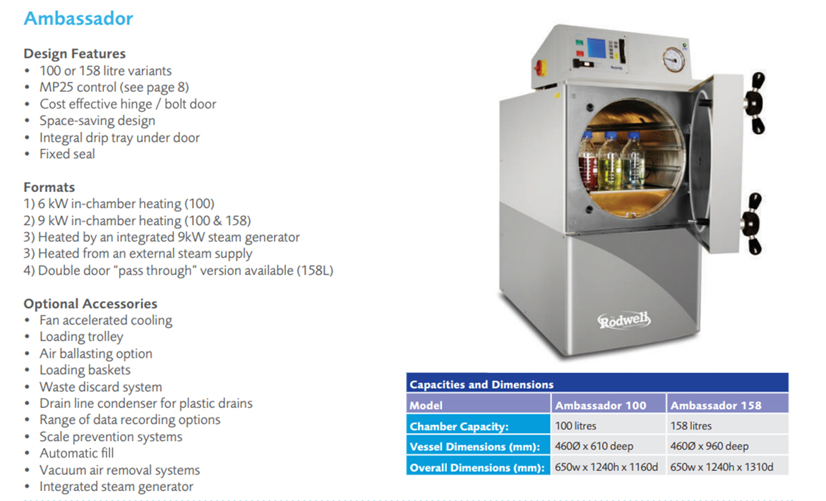 Ambassador Autoclave - 100 & 158L 고압 멸균기 본문