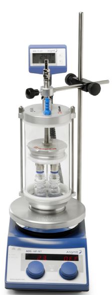 하나의 핫플레이트 교반기 위의 DrySyn heating block에 고비점 용매의 병렬 증발이 가능한 유닛입니다.