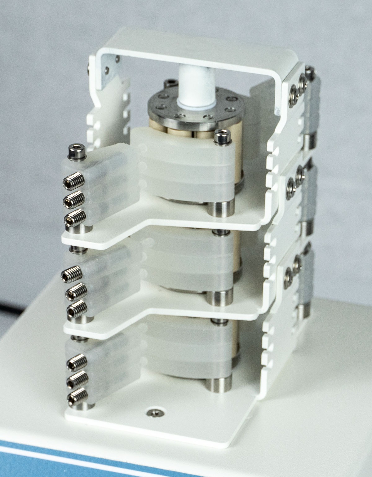 Installation is possible within a few seconds, as the complete system is fixed with only two screws. The high chemical resistance of the pump and the robust construction guarantee an extremely long and reliable use. The complete system represents an extremely efficient construction and is manufactured with highest manufacturing swiss precision. All parts are easy to handle. Especially when replacing the tubes, the focus was placed on simple and safe handling that can be carried out in a few seconds.