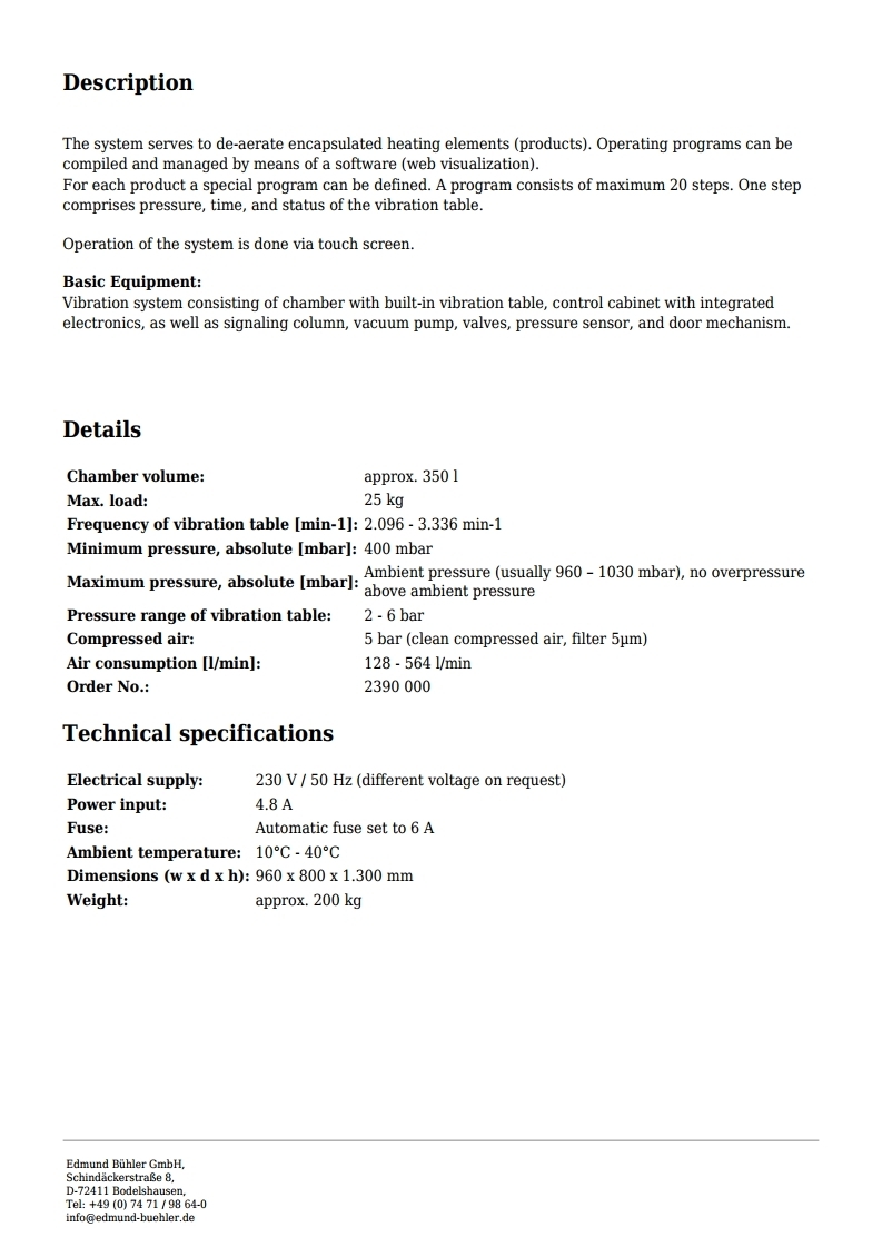 | Chamber volume: | approx. 350 l |