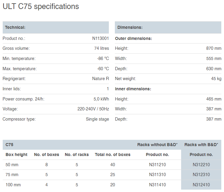 - Personal freezer for easy access and daily use in laboratories, hospitals or anywhere scientific research and storage of sensitive samples is required – e.g. viruses, bacteria, cell preparations and tissue samples.