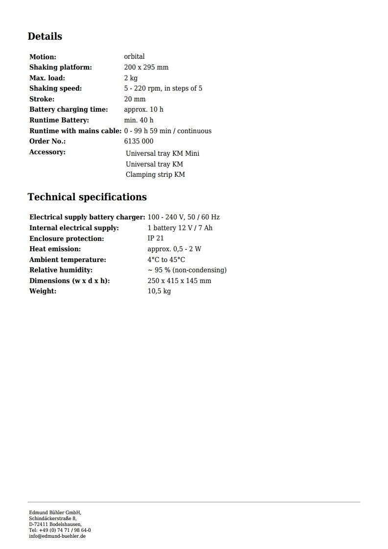 | Shaking speed: | 5 - 220 rpm, in steps of 5 |
