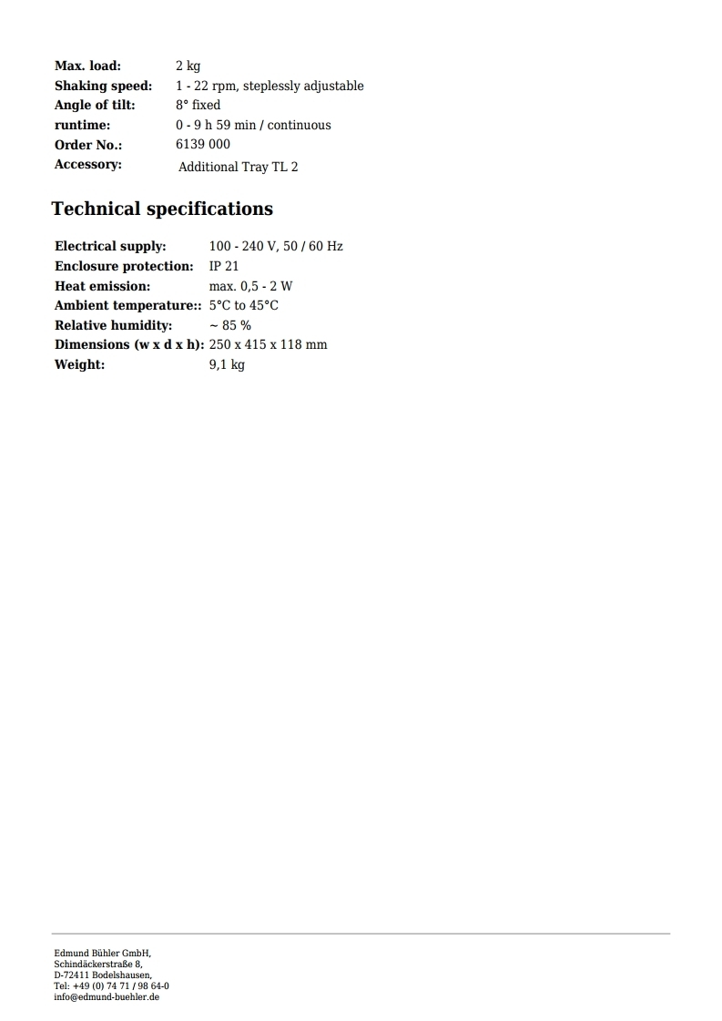 | Shaking speed: | 1 - 22 rpm, steplessly adjustable |