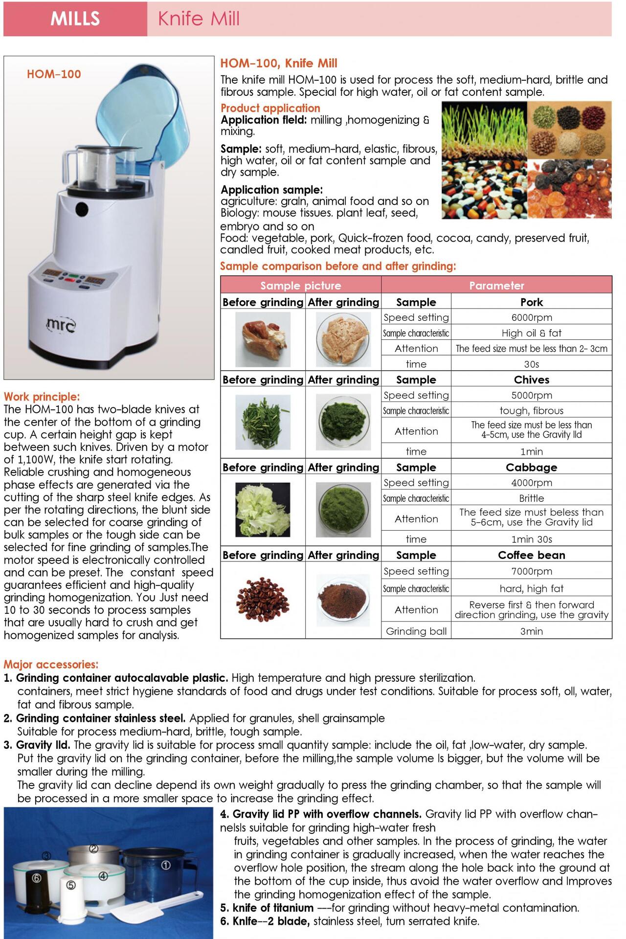 The HOM-100 is ideal for homogenizing materials with a high water, oil or fat content, and is perfectly suited for grinding dry, soft and medium-hard products.