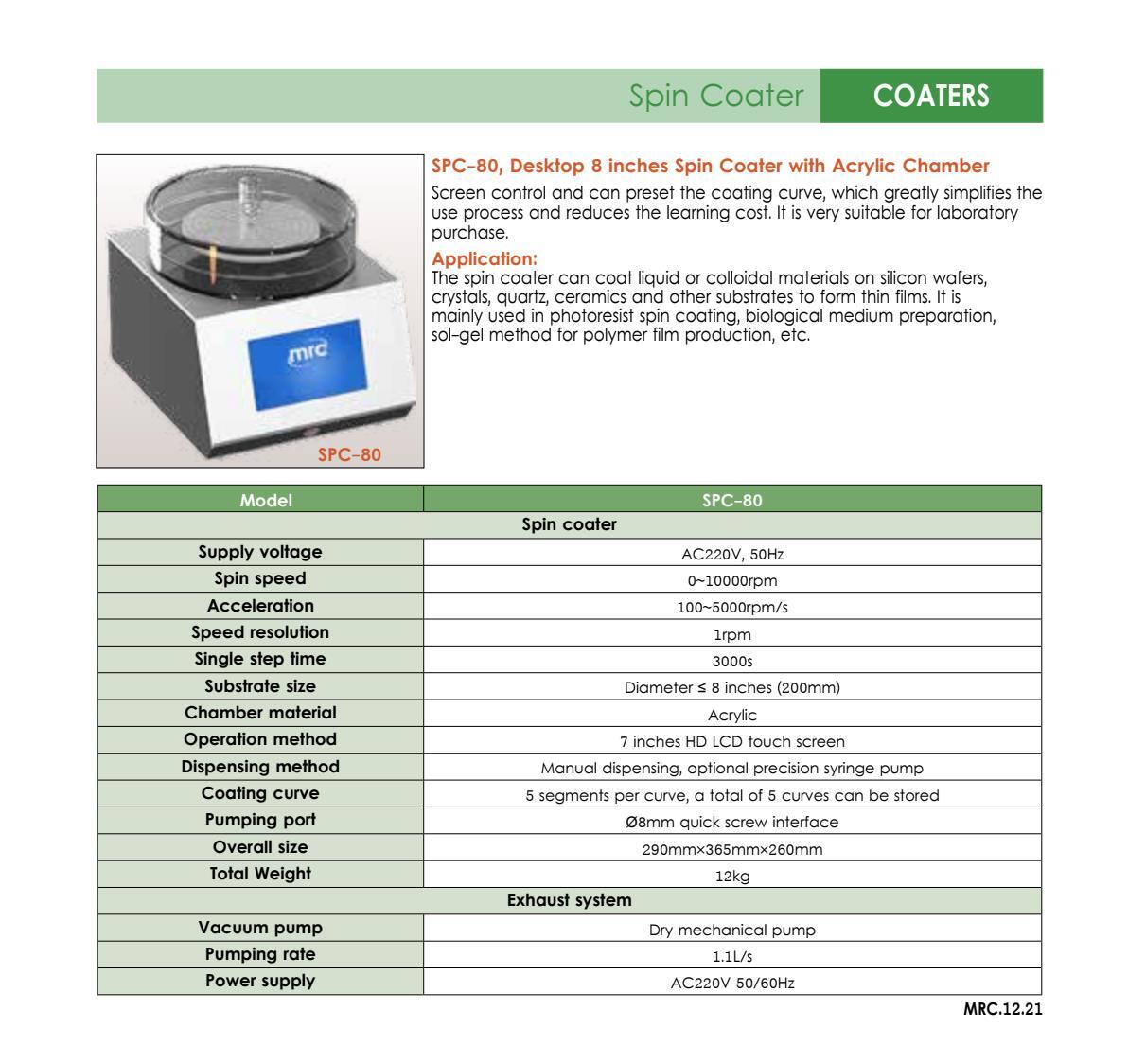 SPC-80 Spin coater -microcomputer control+Touch Panel, with acrylic 본문