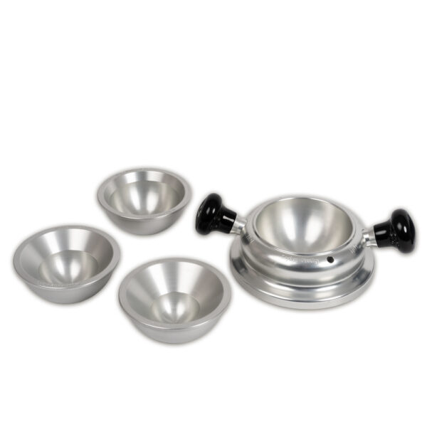 - Anodised aluminium body with screw-in heat-resistant handles supplied as standard