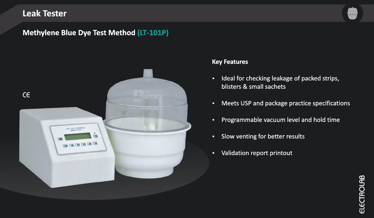 - Ideal for checking leakage of packed strips, blisters, small sachets and ampoules