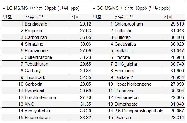 ( Figure 5 ) 커피 잔류농약 분석 중 일부