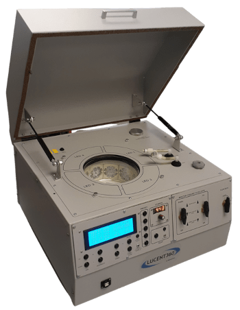 It is the multi-light screener holder (Figure 2) that unlocks the power of the Lucent360™. The multi-light screener separates the light from each quadrant allowing each module to operate independently with a different wavelength or light intensity under the same temperature and experimental conditions. Instead of running a full set of experiments over and over again, to change different parameters, get more information out of each screen.