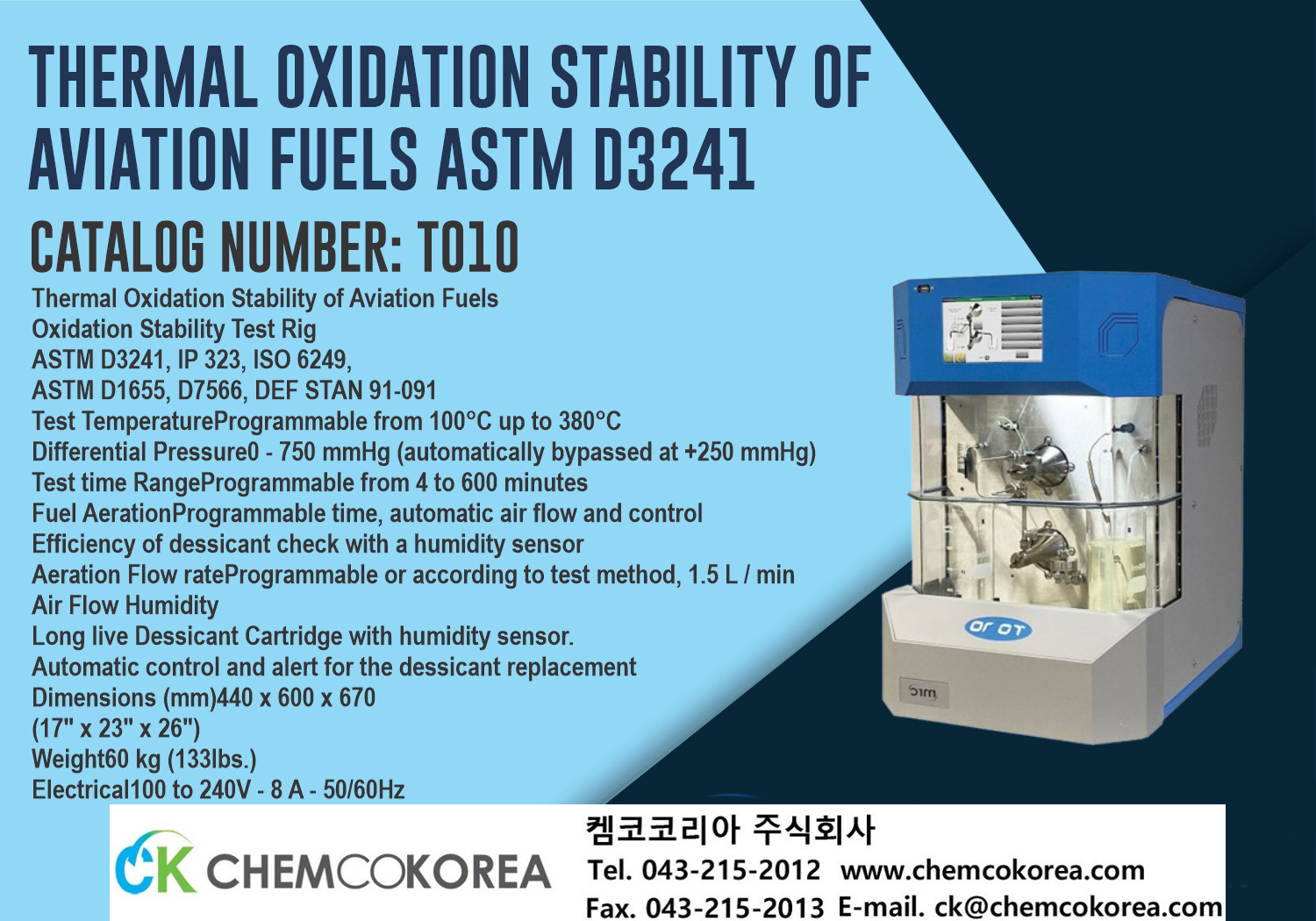 THERMAL OXIDATION STABILITY OF AVIATION FUELS ASTM D3241 :TO10