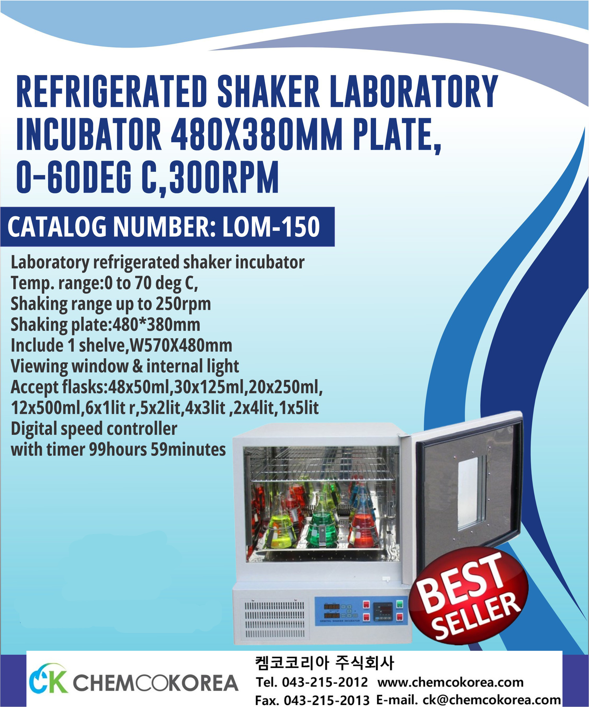 Refrigerated shaker laboratory incubator 480x380mm plate,0-60deg C,300rpm : LOM-150 본문