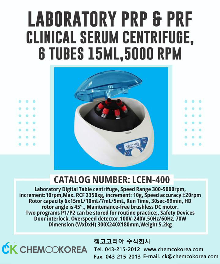 Laboratory PRP & PRF Clinical Serum Centrifuge, 6 tubes 15ml,5000 rpm : LCEN-400 본문