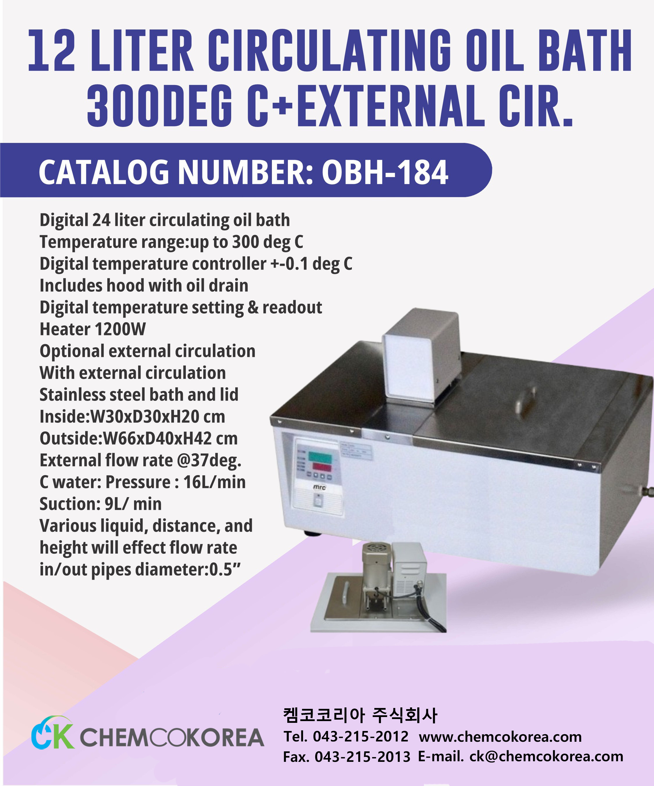 12 liter Circulating Oil Bath 300deg C+external cir : OBH-184 본문