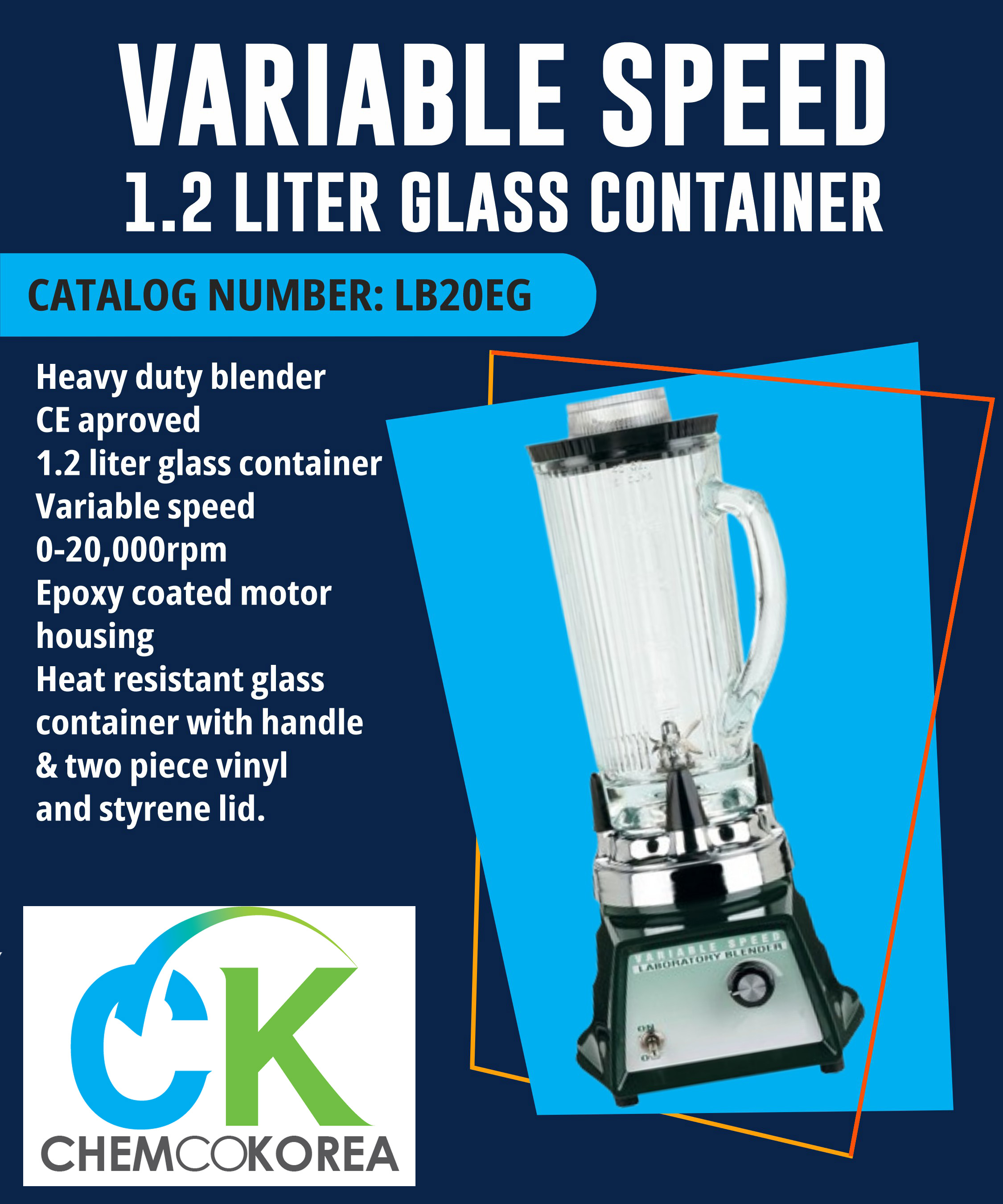 VARIABLE SPEED 1.2 LITER GLASS CONTAINER : LB20EG