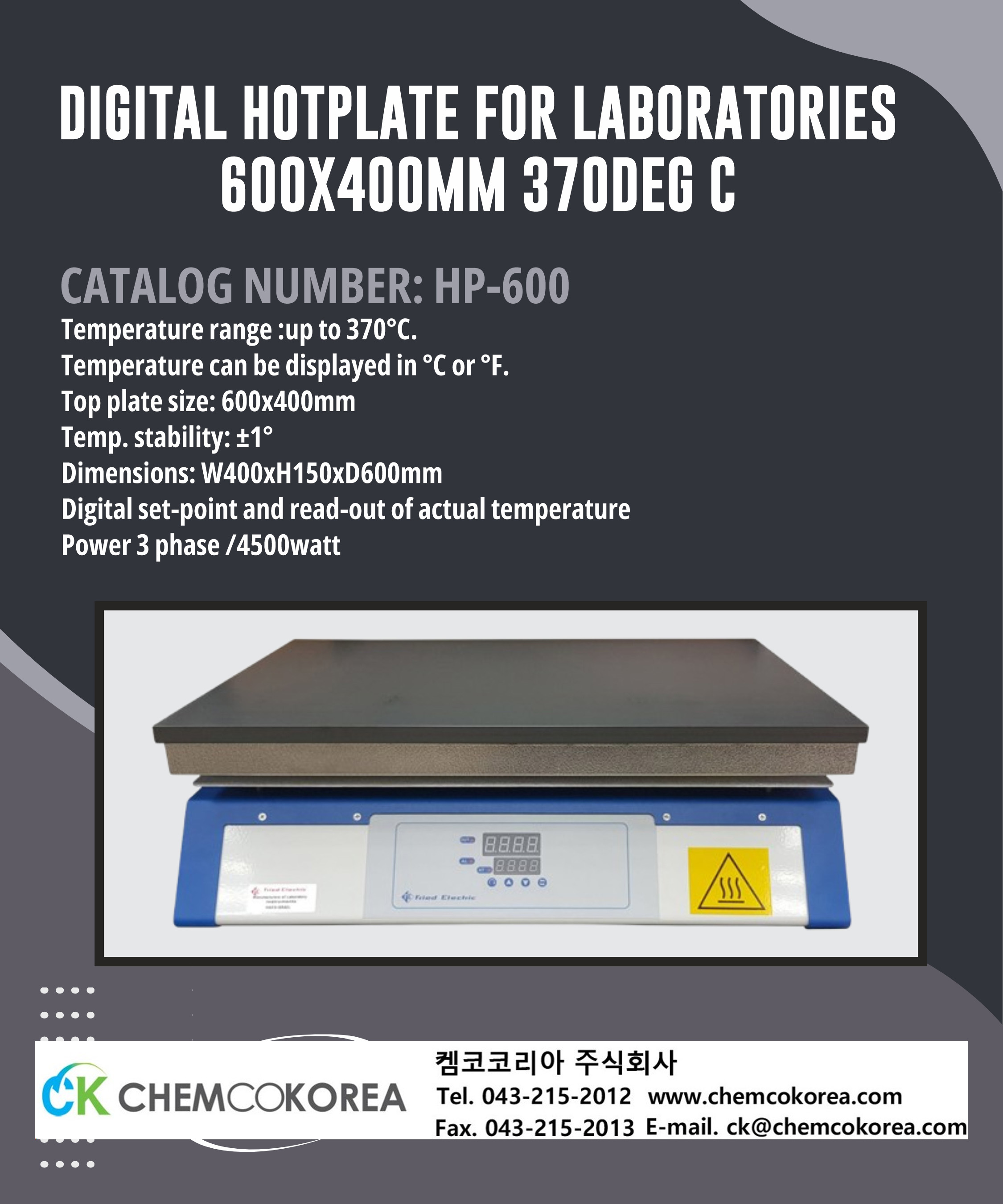 DIGITAL HOTPLATE FOR 600X400MM 370DEG, HP-600 본문