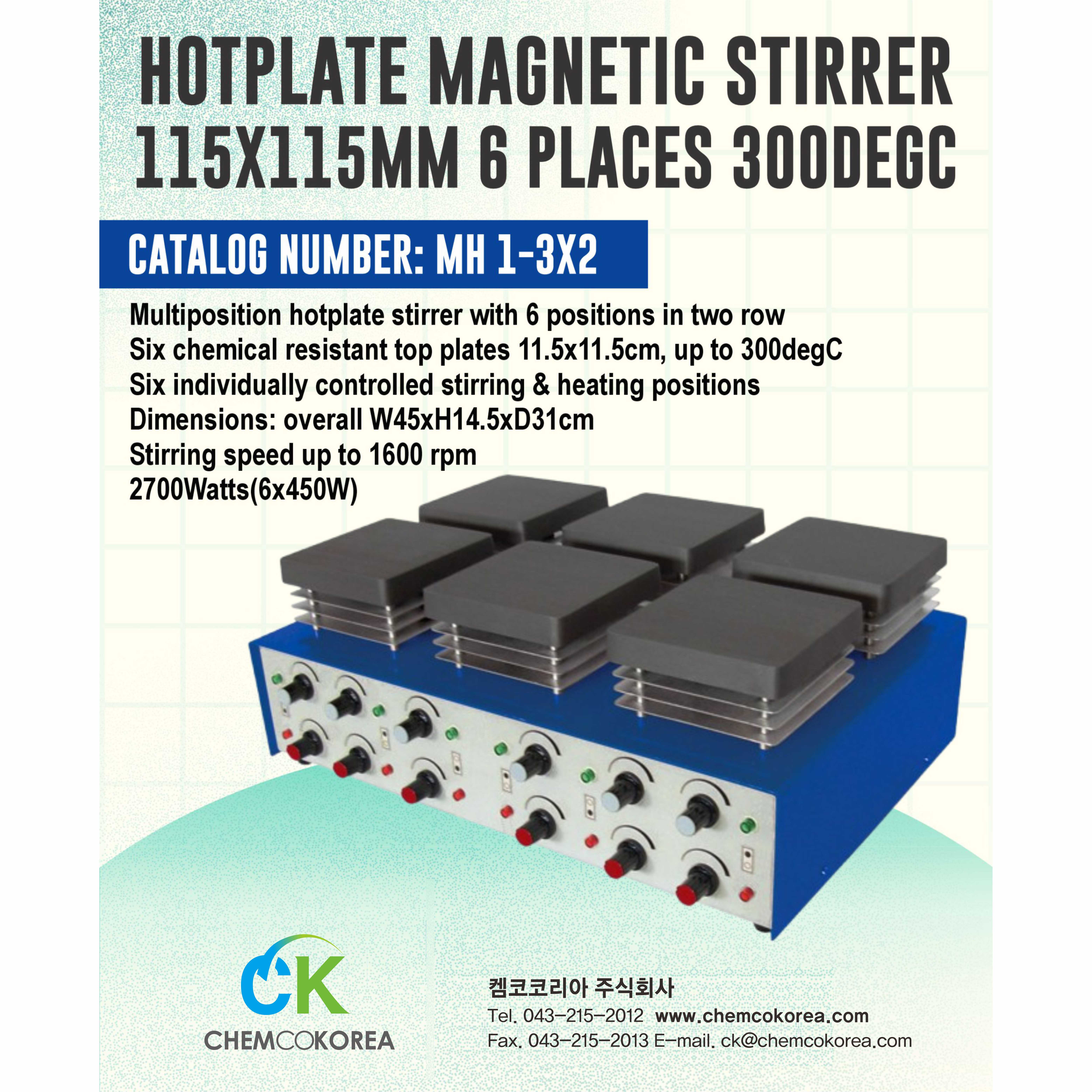 Hotplate magnetic stirrer 115x115mm 6 places 300degC, MH 1-3X2