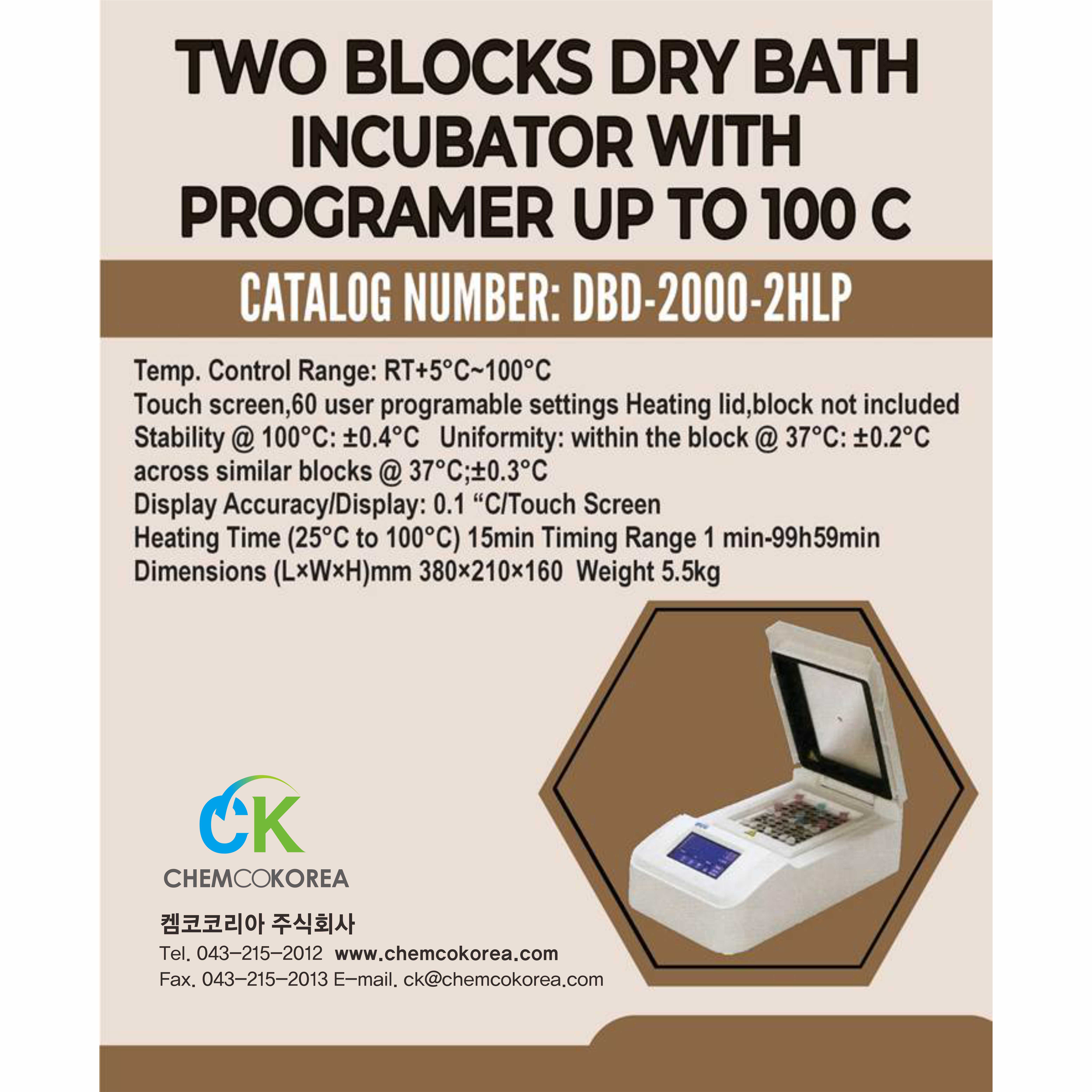 Two blocks dry bath incubator with programer up to 100 C, DBD-2000-2HLP